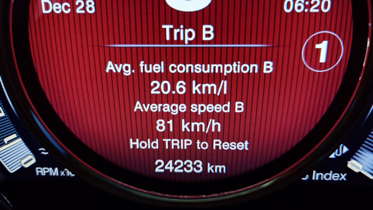 その日は冬も深まってきた12月末、日の出前1時間ほどの最低気温タイムに出発。氷点下に迫る寒さに暖房はもちろん「オン」。高速道路と一般道半々くらいの道のりを80㎞ほど走行。その結果は「燃費20.6㎞/l」でした。あまり大きな声では言えませんが、それなりに車速も出てますし、加速も楽しんでいてこの結果ですから、おそらく誰でも出せる燃費だと思います。ちなみに、記憶の限りで私の最高記録は「燃費21.1㎞/l」です(写真撮り損ねた)。